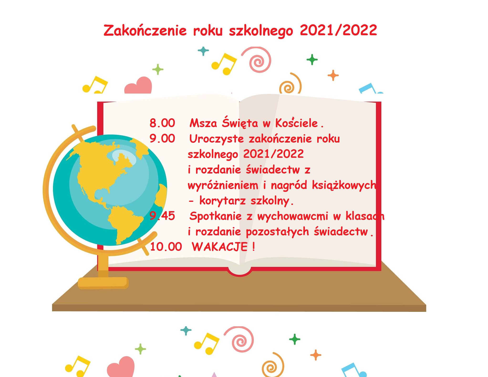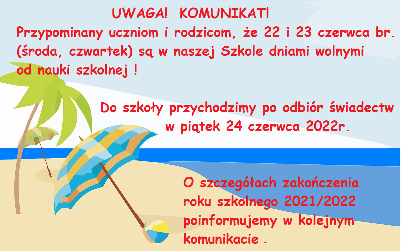 KOMUNIKAT! Zakończenie roku szkolnego 2021/2022