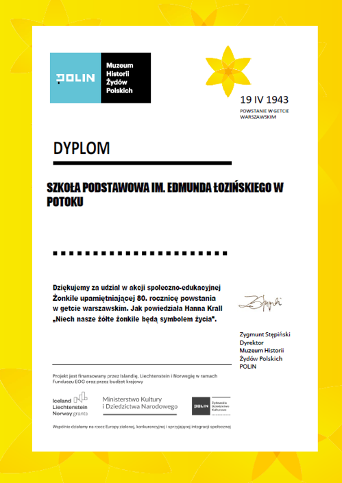 Dyplom dla Szkoły za udział w akcji "Żonkile"